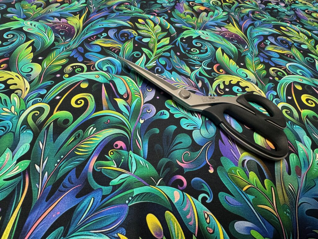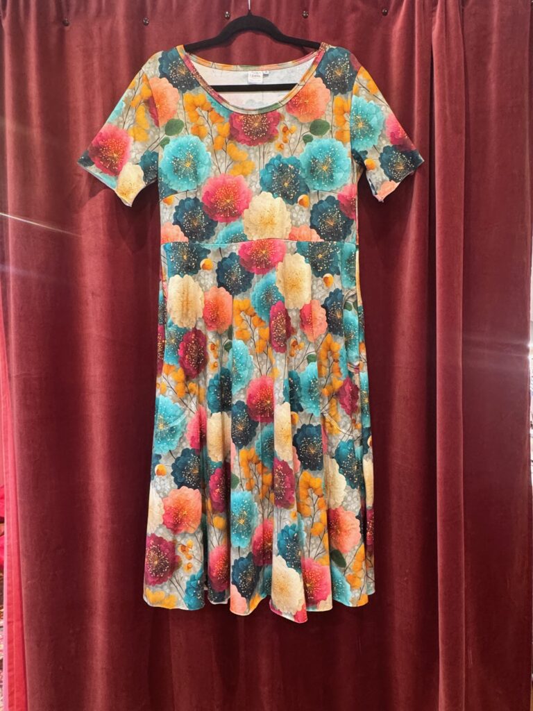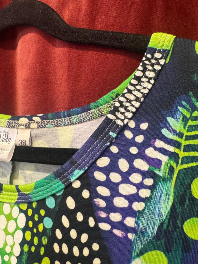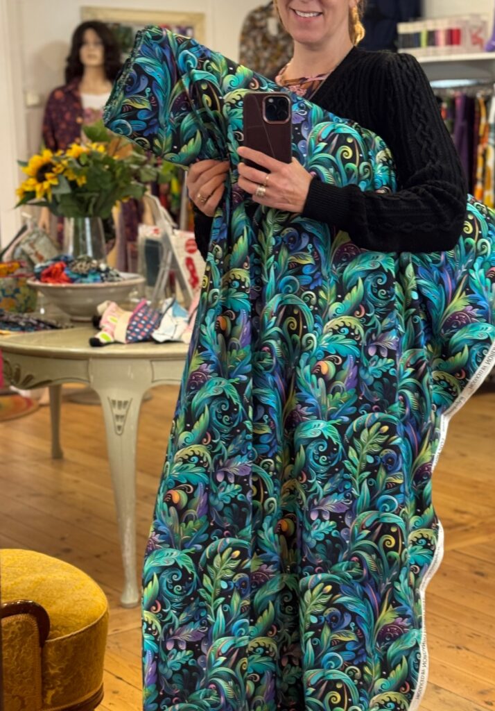 20/2 – Grönblå vårblommig. Tyg kvar till enstaka plagg.