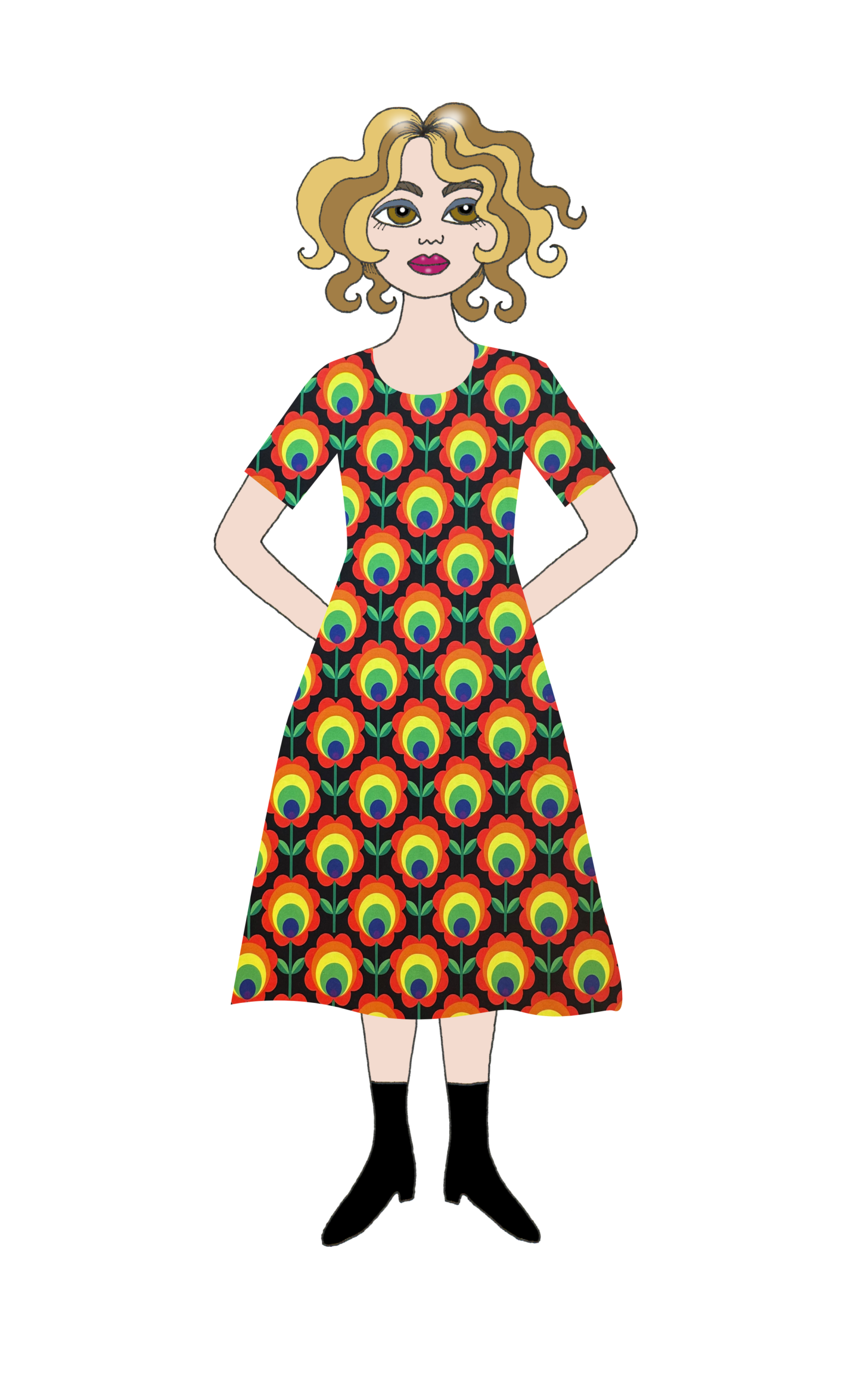 Grundpriset avser en knälång kortärmad klänning cirka 100 cm lång från axeln och ner. Fickor eller knytskärp går att lägga till mot pristillägg (200:-) Önskas en klänning med rakare kjoldel hör av dig så fixar vi detta! Kjoldelen är klockad med tvärgående söm vid midjan. Modell Brita och Saga är likadana upptill men Saga har mer  vidd kjolen och är därmed lösare över magen. Väljer du fickor sys dessa mot framstycket för att ligga fint mot höften utan att bli klumpiga.