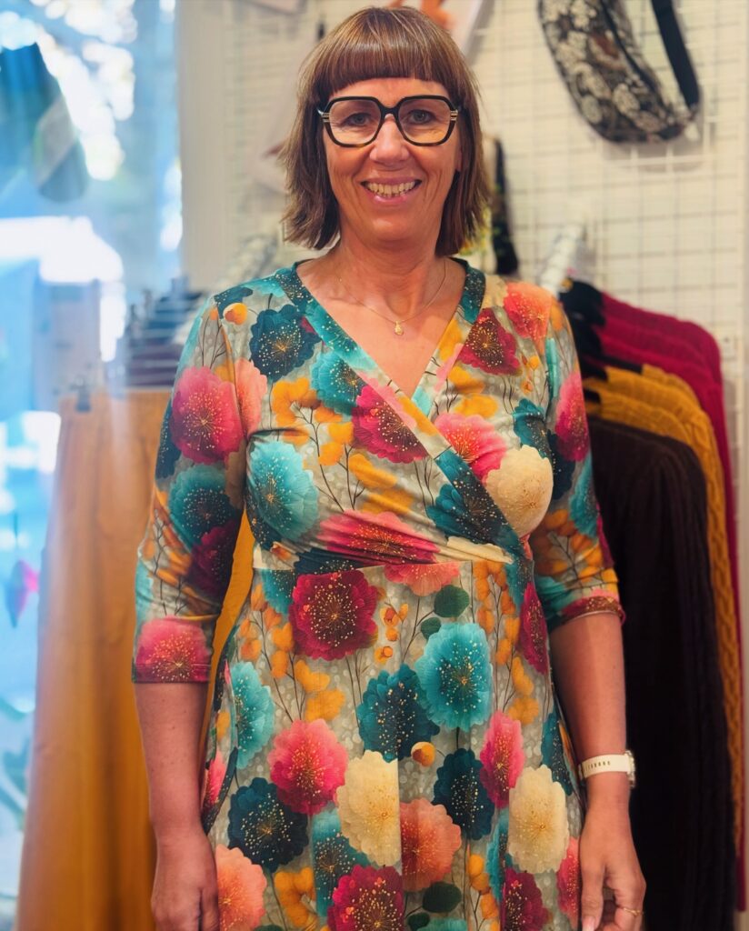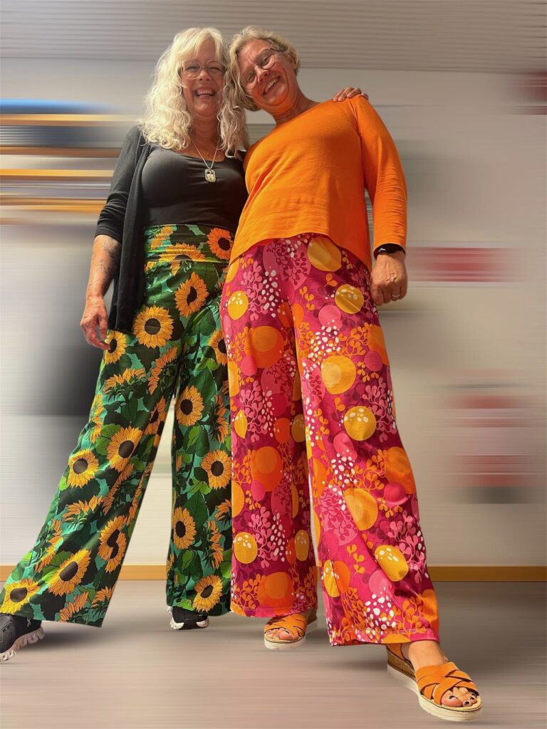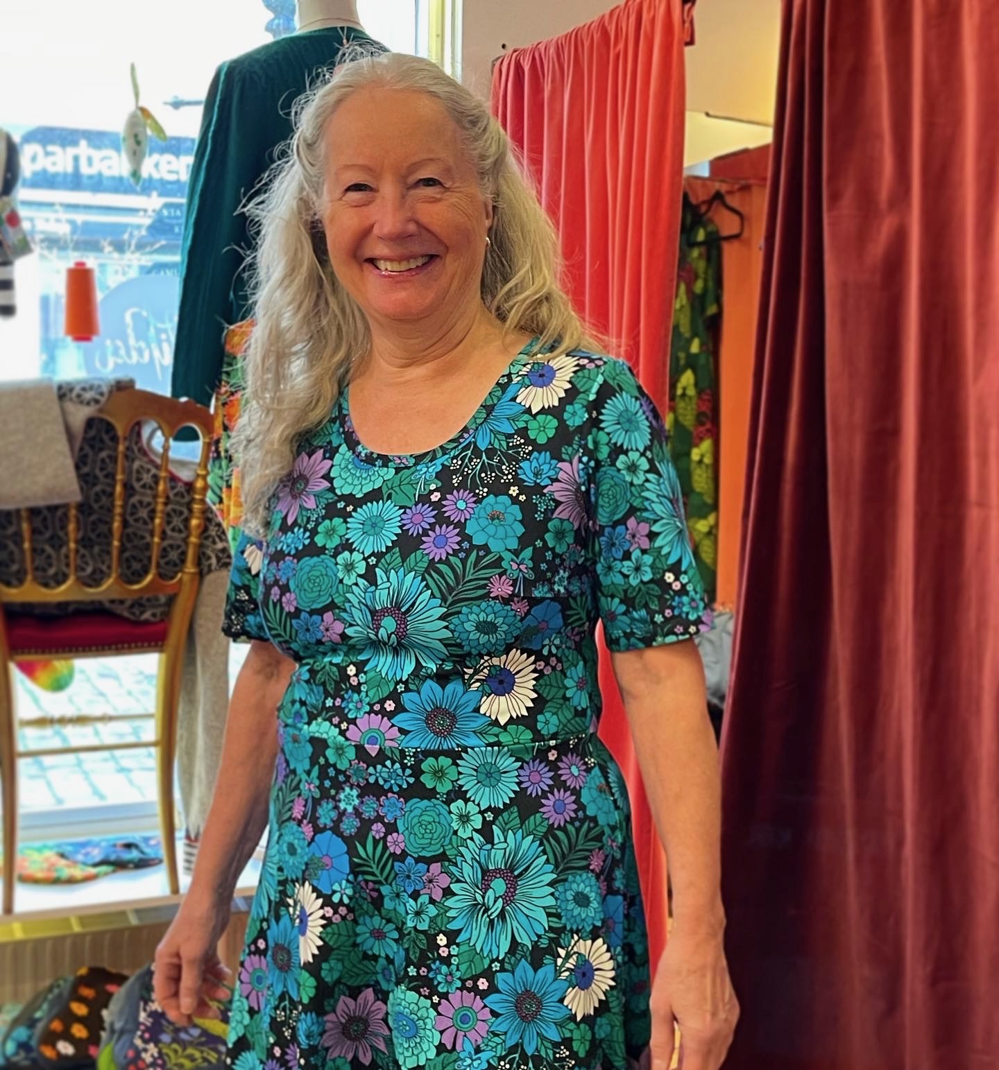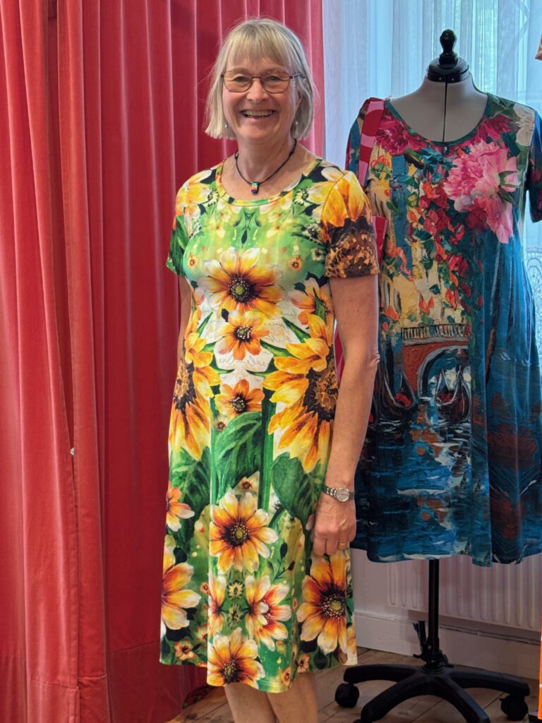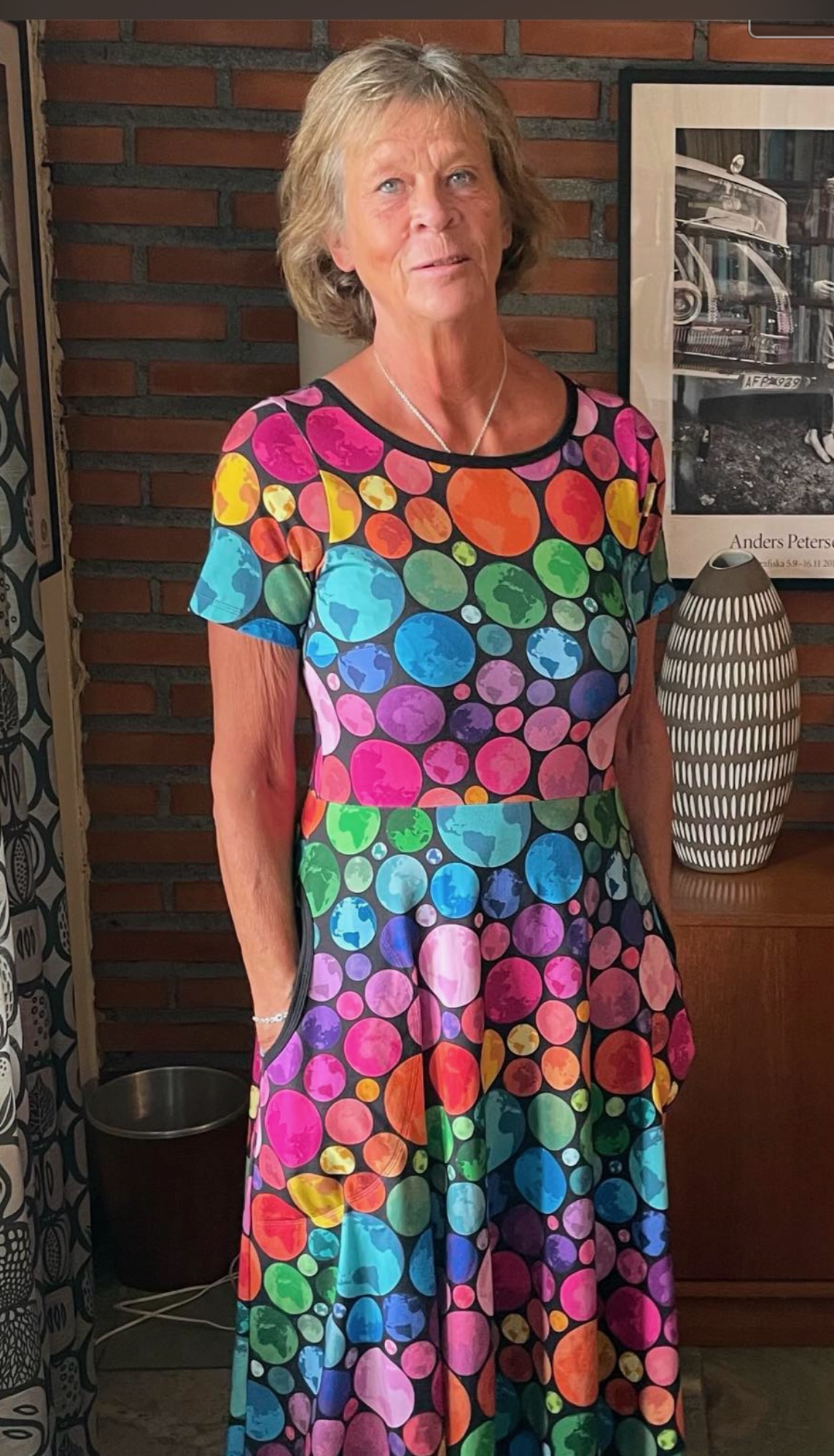 Våra färgglada plagg designas och sys i Sverige. Alla klänningar sys i vår egen syateljé i Ystad. Vi säljer färdigsydda plagg i vår egen butik samt via sociala medier. Varje månad (ej maj-aug) tar vi i mån av tid ett mycket begränsat antal beställningar, då främst som förhandsbokningar.