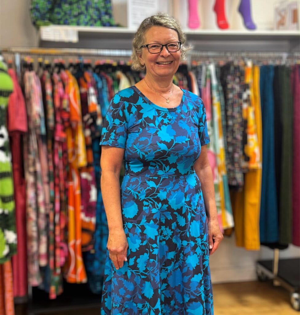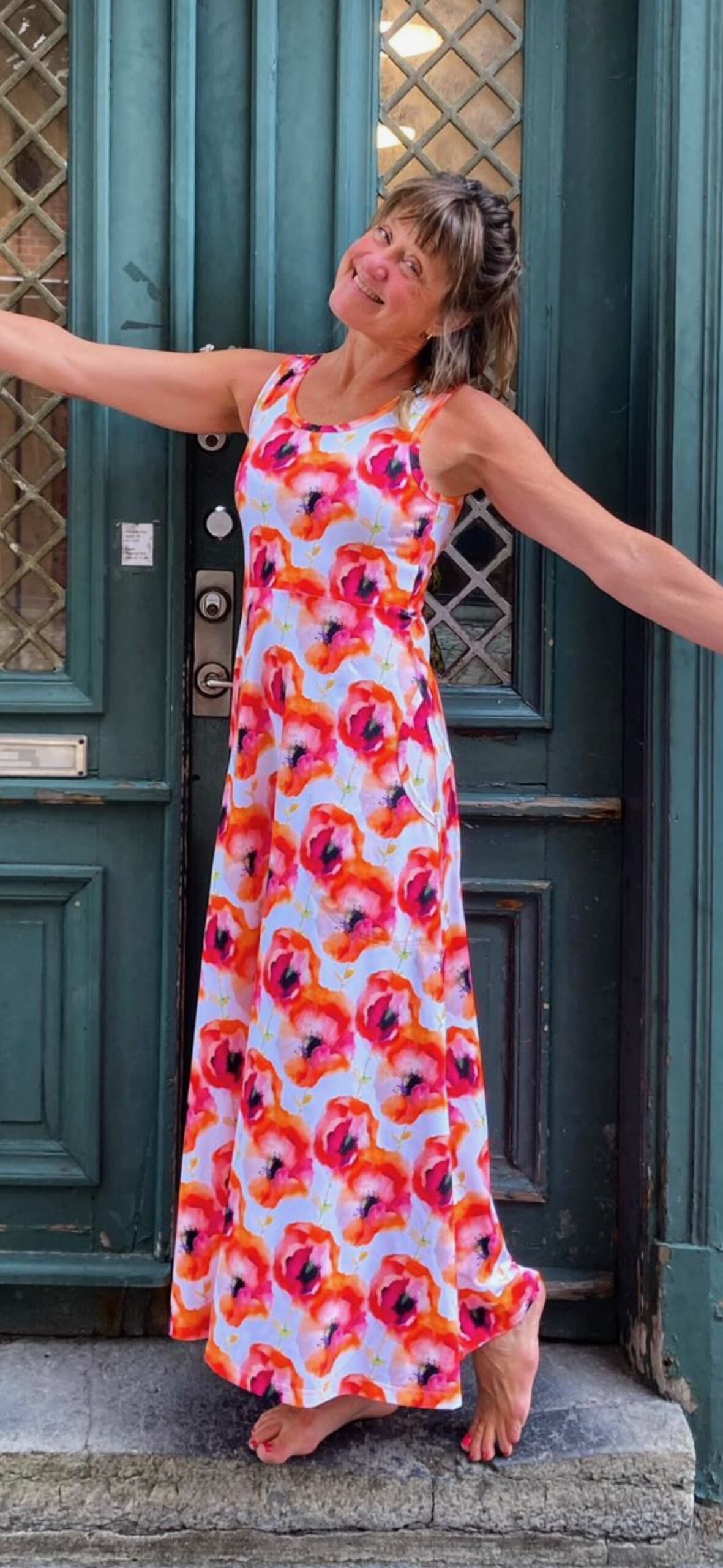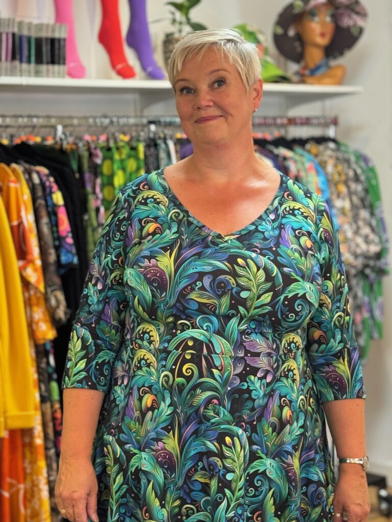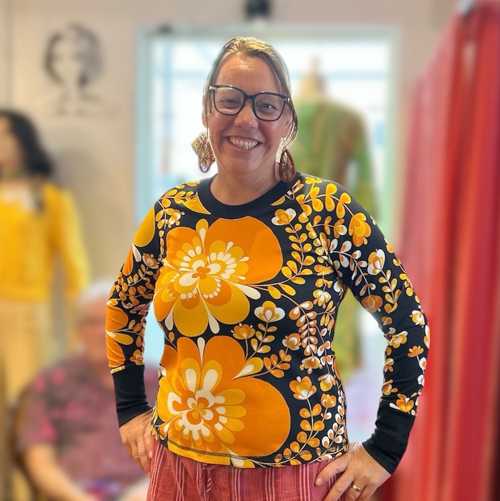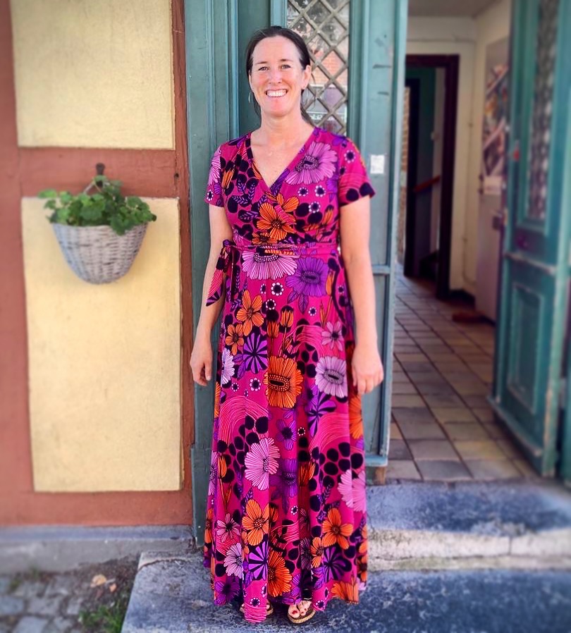 Våra färgglada plagg designas och sys i Sverige. Alla klänningar sys i vår egen syateljé i Ystad. Vi säljer färdigsydda plagg i vår egen butik samt via sociala medier. Varje månad (ej maj-aug) tar vi i mån av tid ett mycket begränsat antal beställningar, då främst som förhandsbokningar.