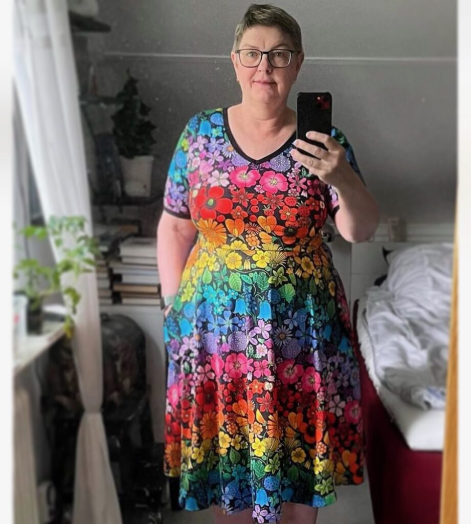 Hos oss finns inte bara fasta storlekar, hos oss kan du få måttanpassat plaggen. Alla kroppar är olika (tur är väl det), det är plaggen som ska anpassa sig – inte våra kroppar. Vi har samma prisnivåer på våra plagg oavsett om du är stl 32 eller 64.